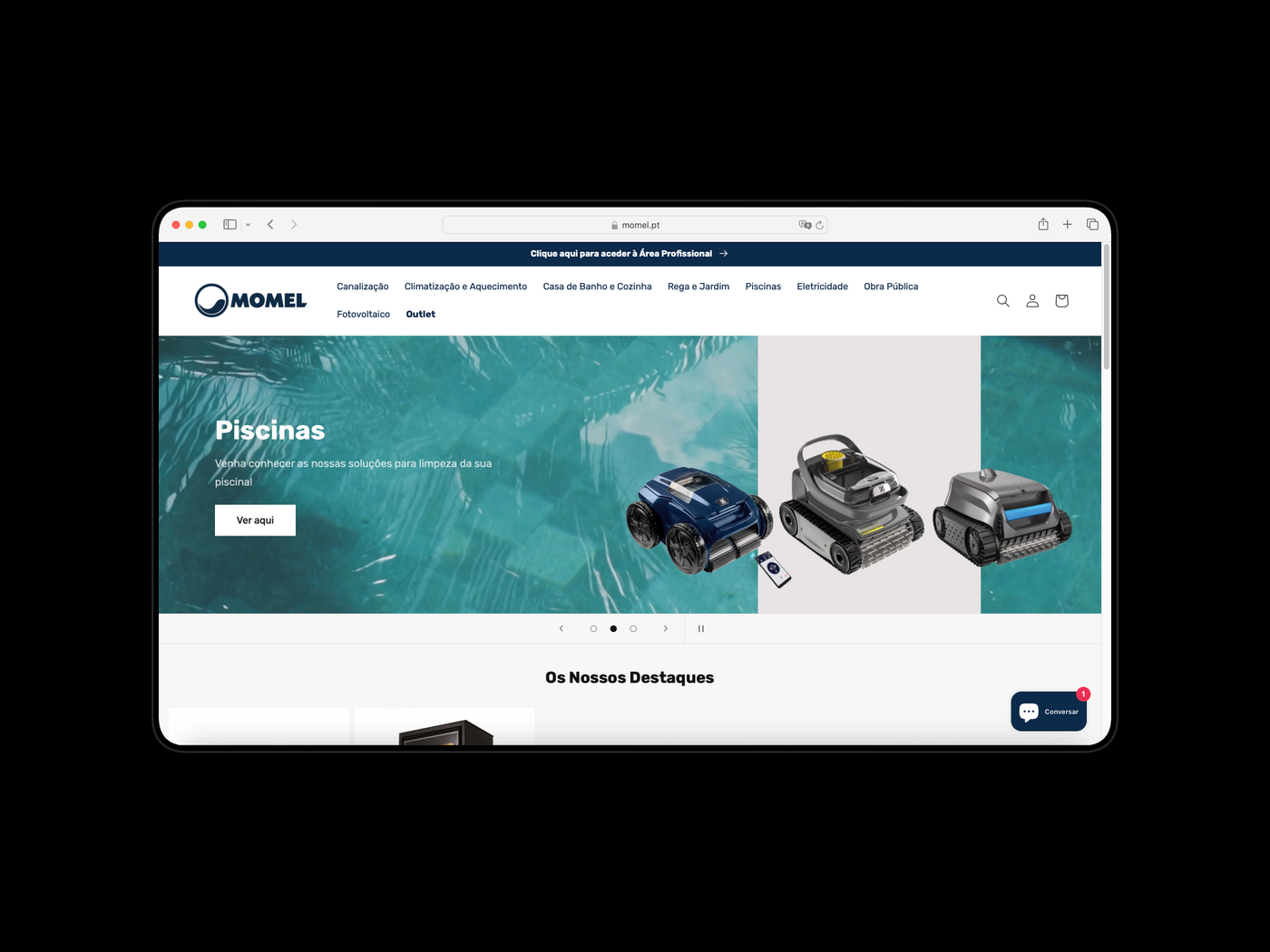 Momel is a leading Portuguese company in the construction and ceramic products sector. To modernize and unify its digital operation, Basicamente developed an e-commerce ecosystem on Shopify , integrating a B2C store and a B2B platform into a single environment, fully linked to the Artsoft ERP system .