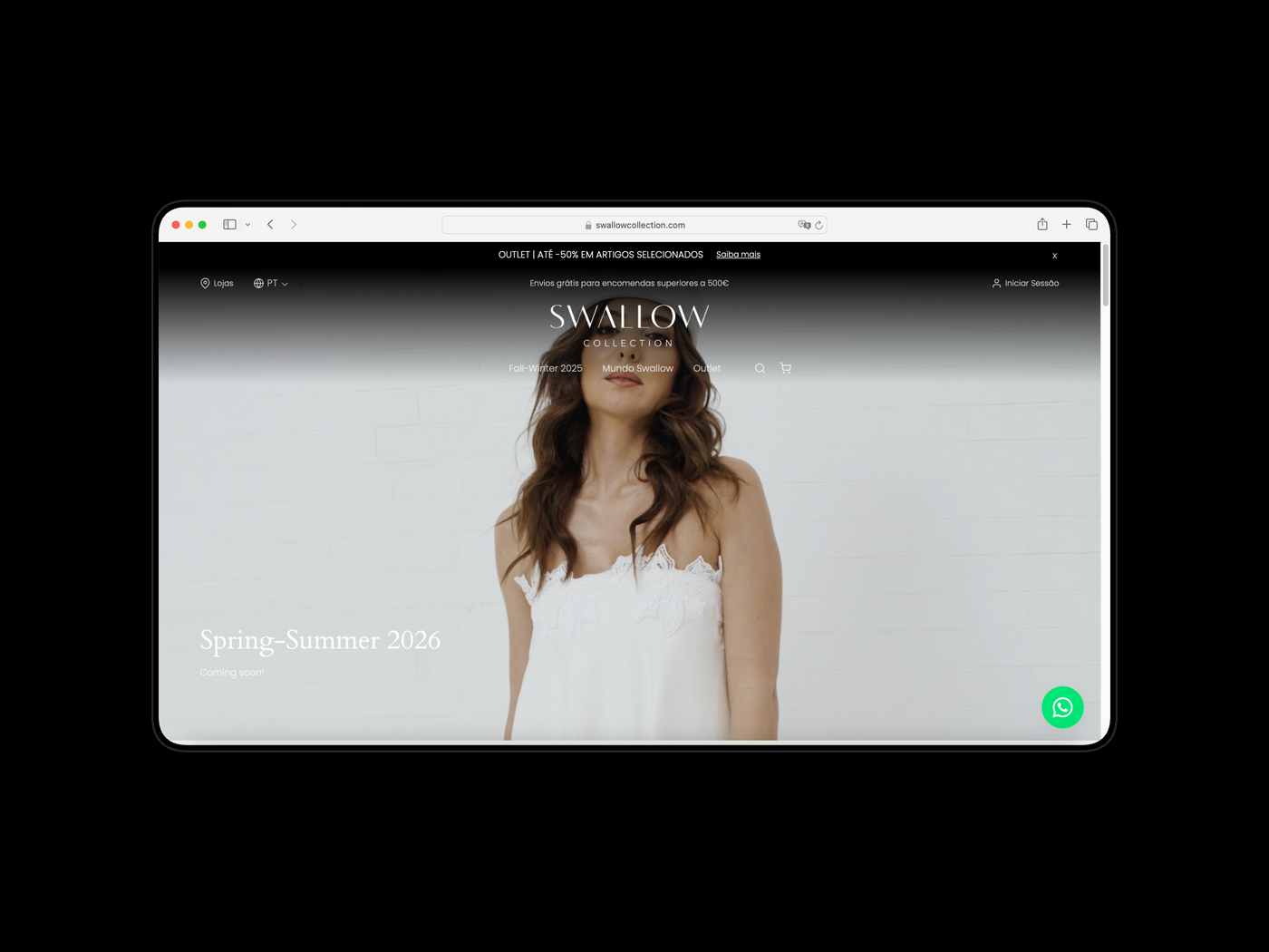 E-commerce B2C em Shopify para a Swallow Collection, integrado com ERP Sage, focado em design premium, eficiência operacional e uma experiência de compra preparada para escalar vendas online.